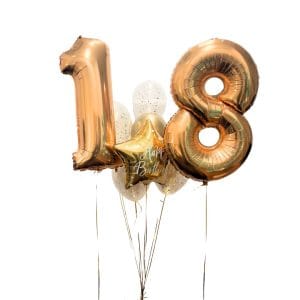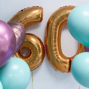 - Dos números foil de 66 cm hinchados con helio profesional con sendos pesos