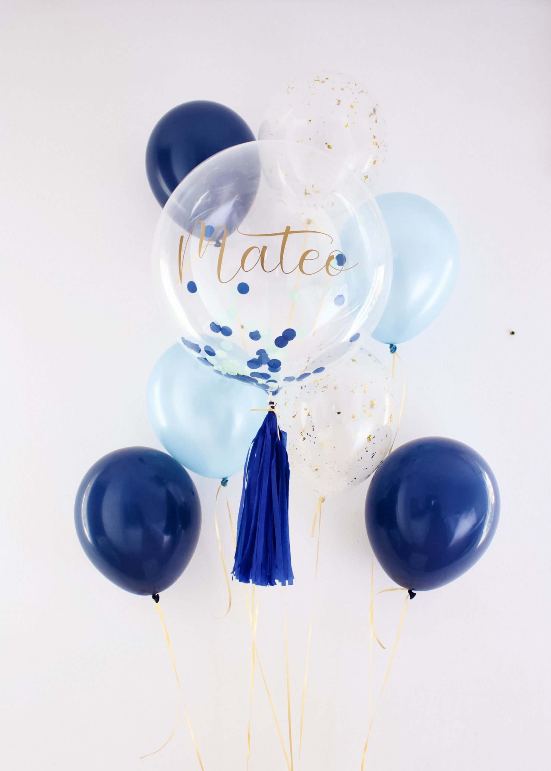 • Globos de látex en tonos a elegir (rosa, verde, azul) hinchados con helio y tratados para maximizar su flotación