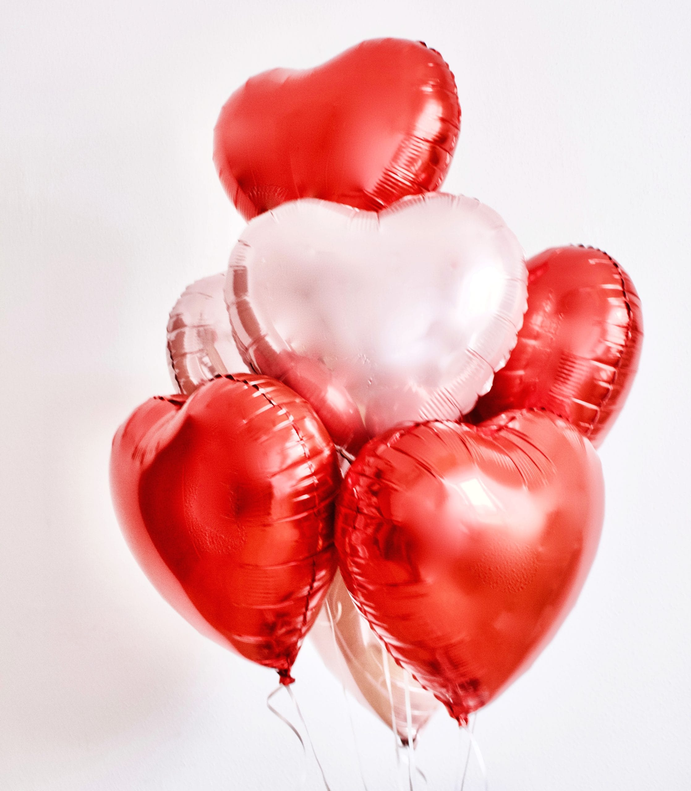 • 8 corazones de foil   (45 cm) en tonos rojos y/o rosas hinchados con helio profesional