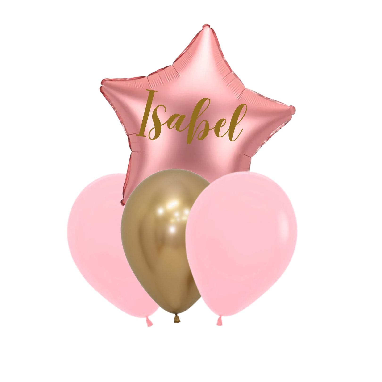 - 3 globos de látex a tono con la estrella hinchados con helio profesional