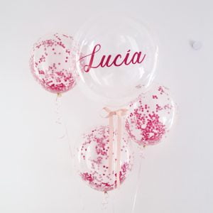 - 2 Globos XL hinchados con helio profesional personalizados con texto y decorados con cintas o flecos